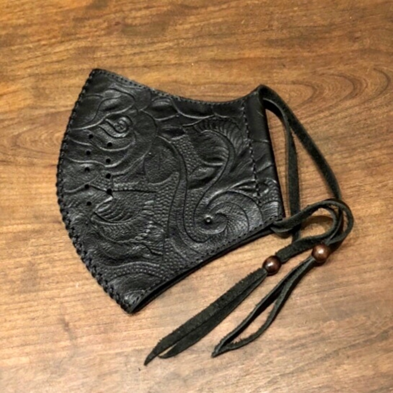 [本革] レザーマスク ファッションマスク 薔薇柄 ブラック