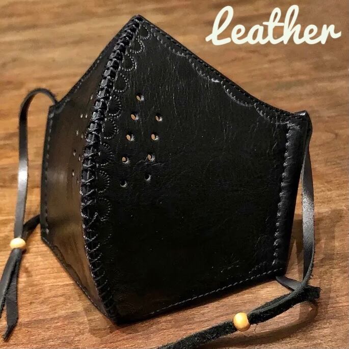 [本革] 高級 レザーマスク ファッションマスク 黒