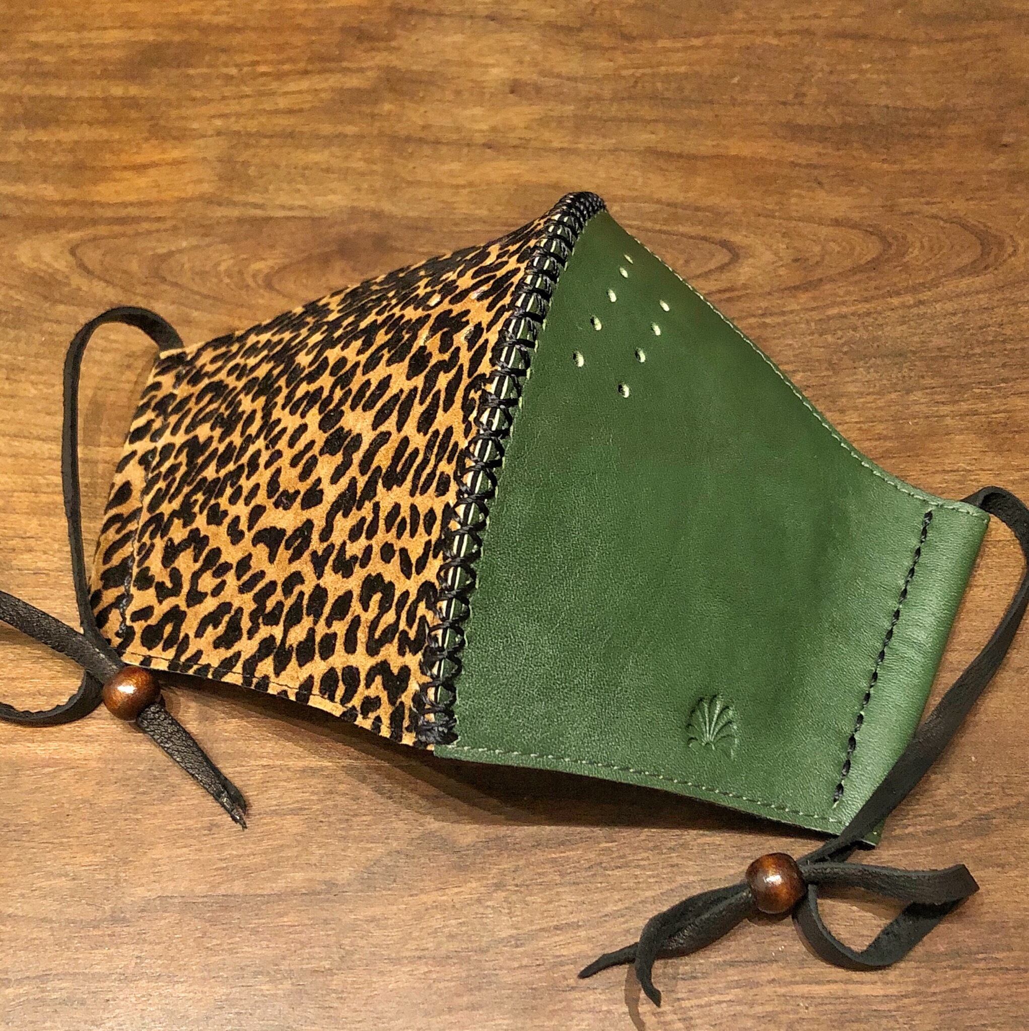 [本革] レザーマスク ファッションマスク ツートン 豹柄×クラシックグリーン