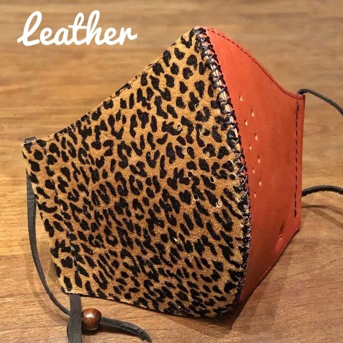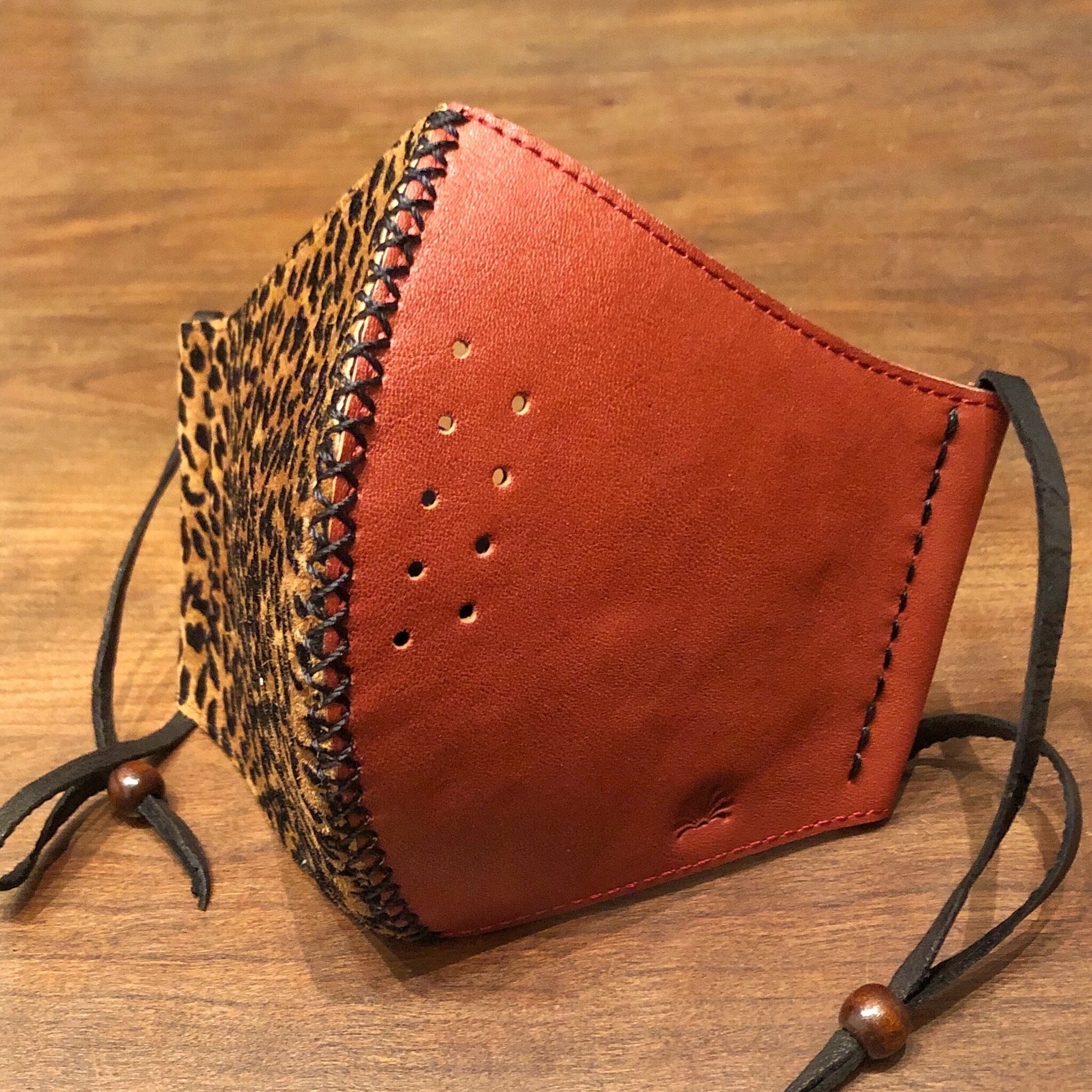 本革] レザーマスク ファッションマスク ツートン 豹柄×レッド