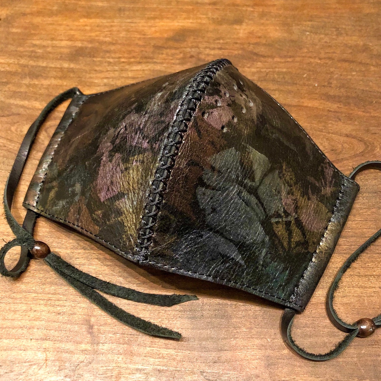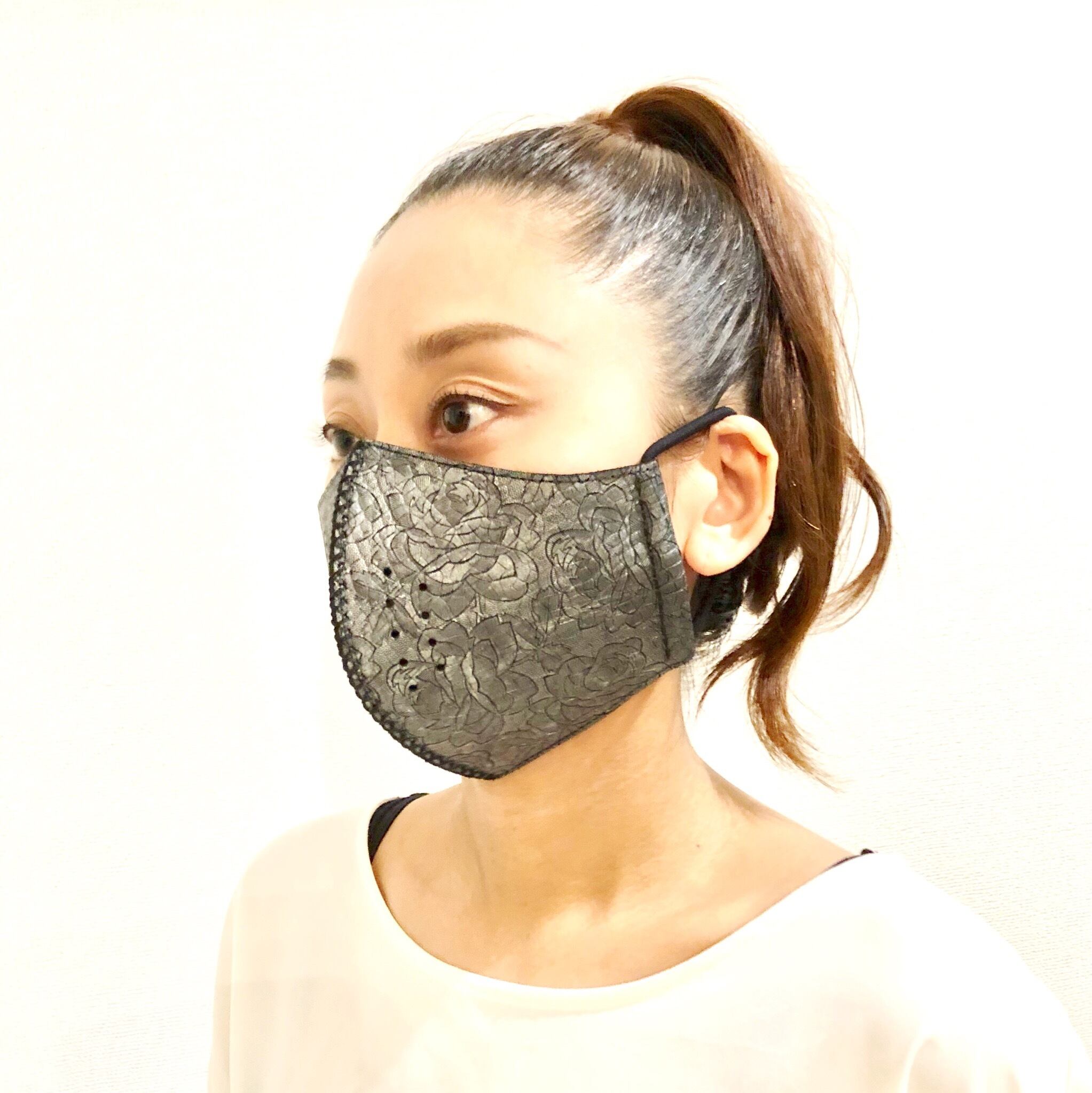 [本革] 高級 レザーマスク ファッションマスク メタリック柄 マスクカバー