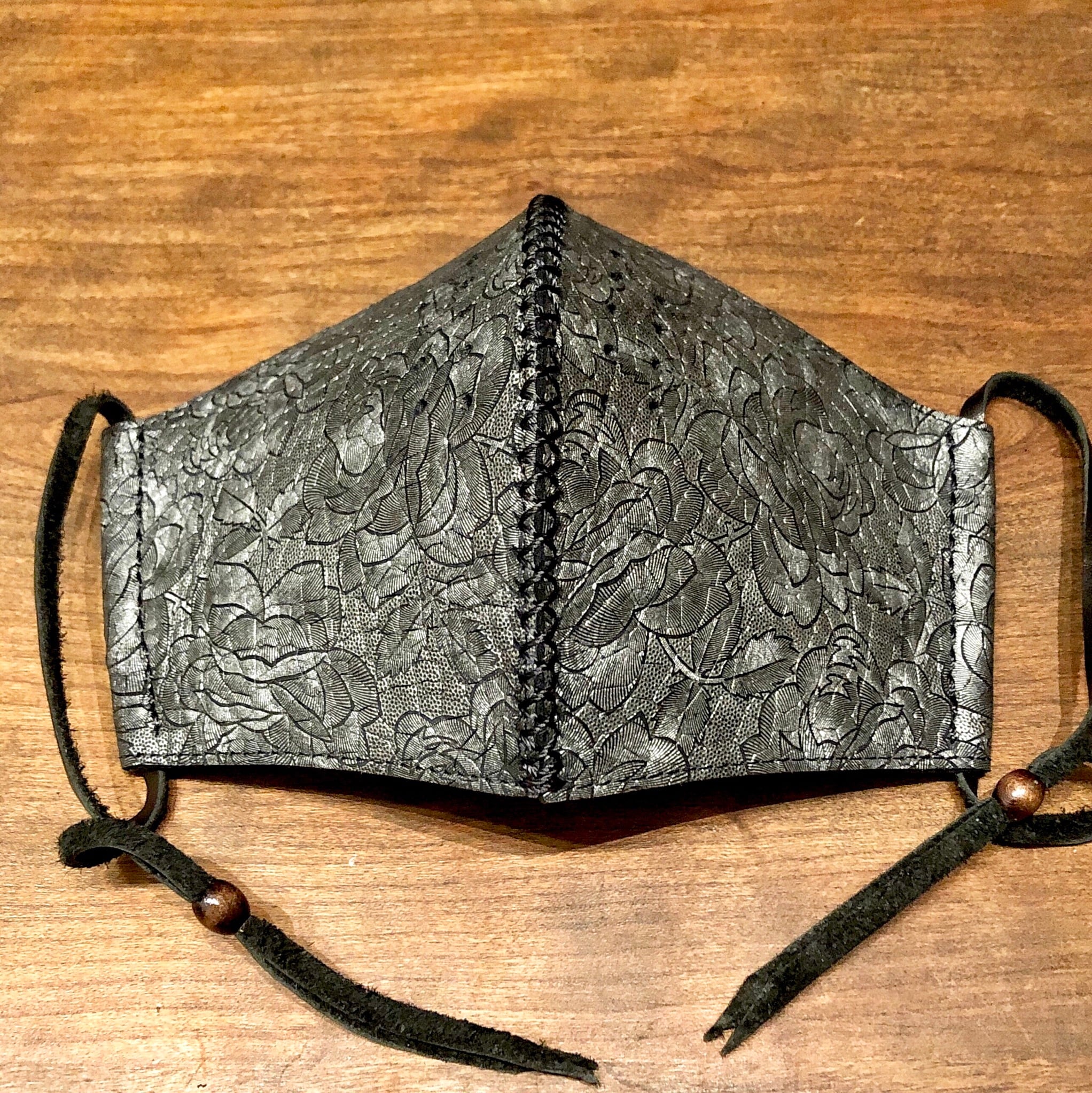 [本革] 高級 レザーマスク ファッションマスク 花柄 シルバー系