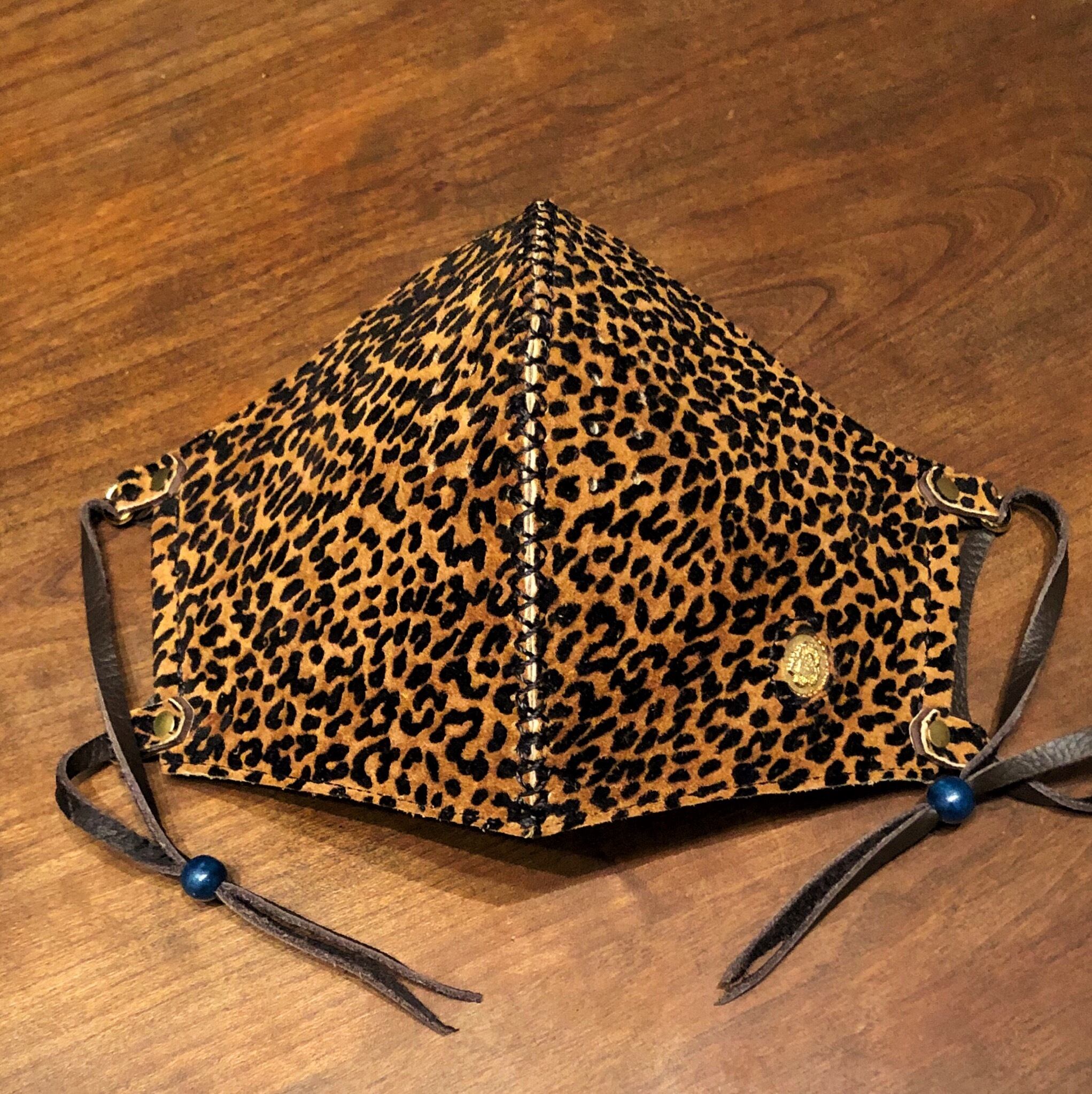 [本革) 高級 レザーマスク ファッションマスク 豹柄 レオパード